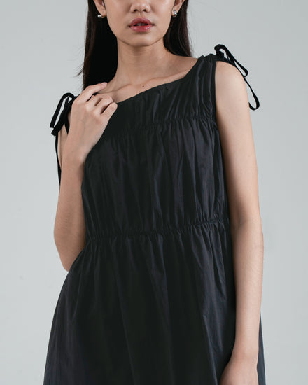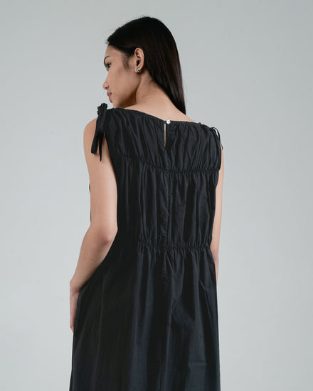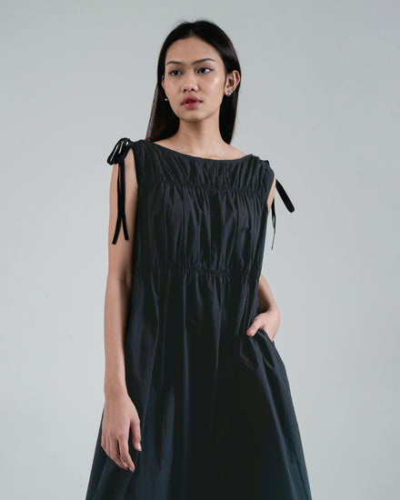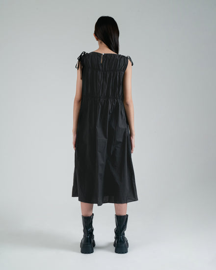 SCRUNCHED MIDI DRESS WITH SHOULDER BOW