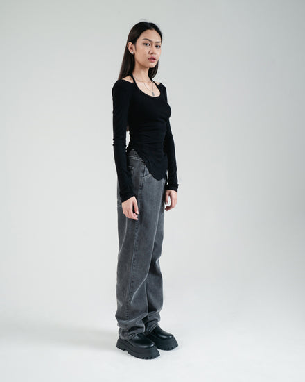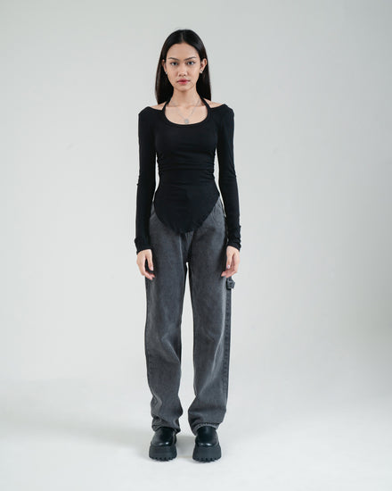 FITTED LONGSLEEVES WITH NECK STRAP AND HALF BACKLESS IN BLACK, WHITE, AND GREY