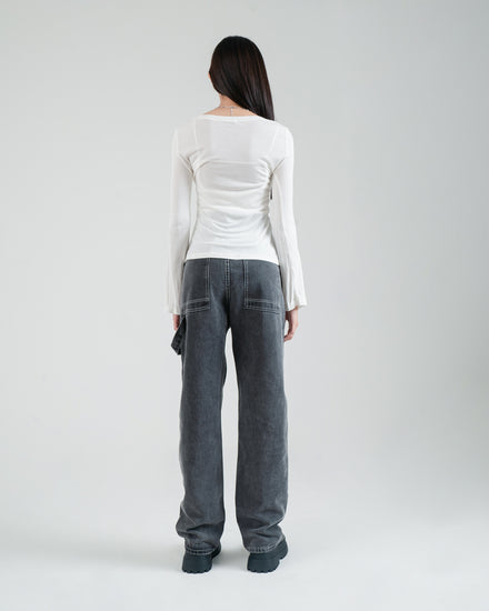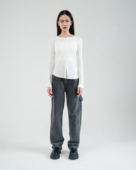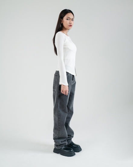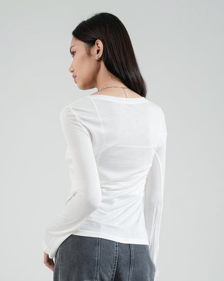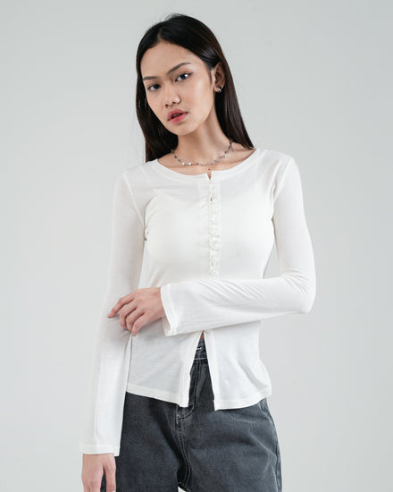 WHITE LONGSLEEVE WITH SPLIT BOTTOM HEM TOP