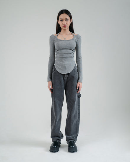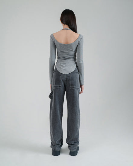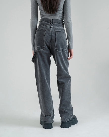 HIGHWAISTED GREY DOUBLE BACK POCKETS PANTS
