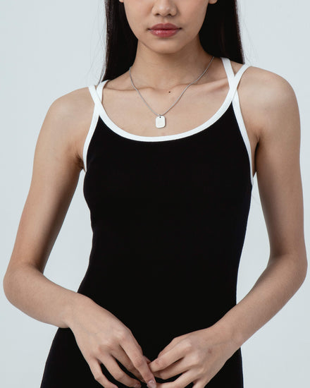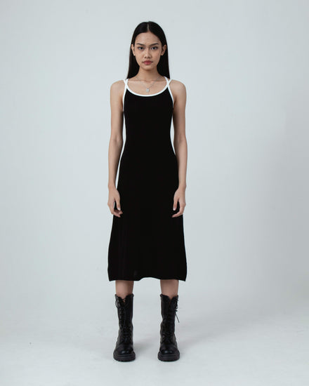 LONG BLACK DRESS WITH CRISS CROSS WHITE LINES IN THE BACK