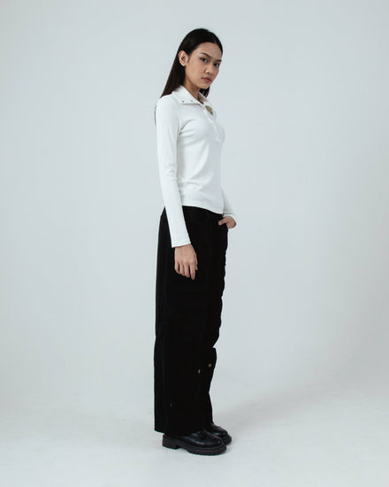 LONGSLEEVE T-SHIRT WITH BUTTONS UP HALTER NECK