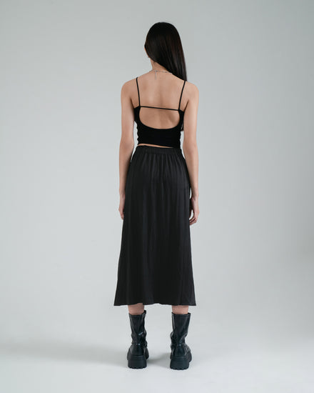 A-LINE MIDI RIPPLE SKIRT WITH BELT LOOPS IN BROWN, BLACK, AND CREAM