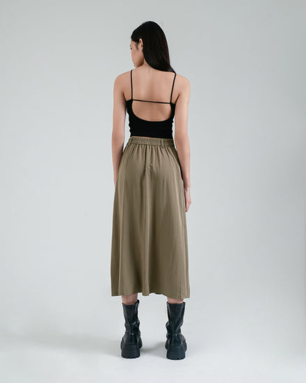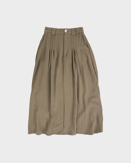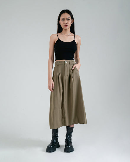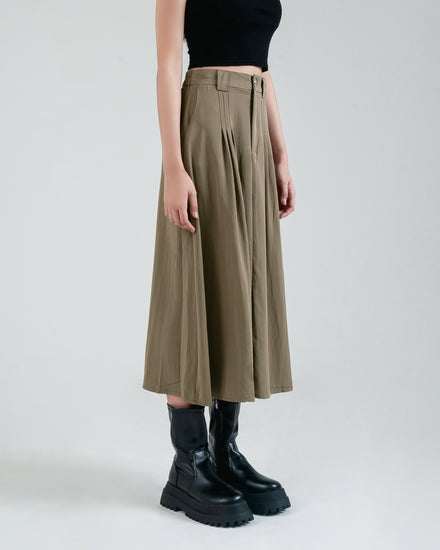 A-LINE MIDI RIPPLE SKIRT WITH BELT LOOPS IN BROWN, BLACK, AND CREAM