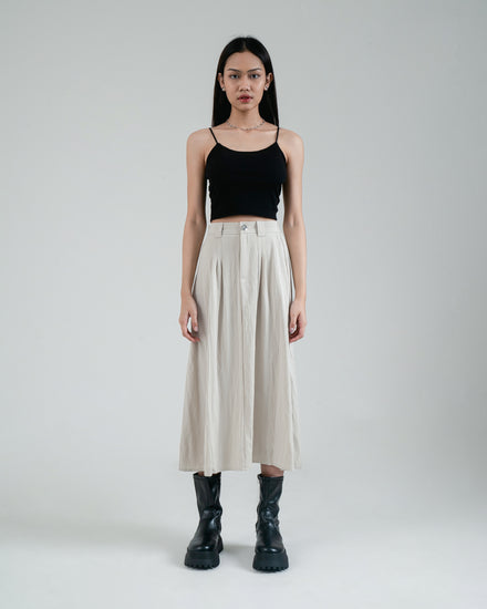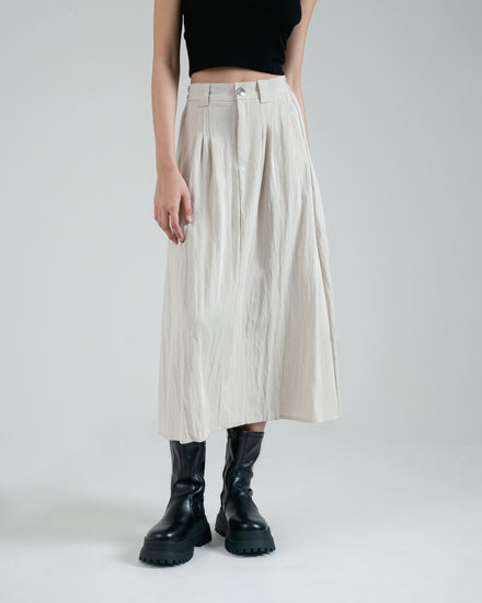 A-LINE MIDI RIPPLE SKIRT WITH BELT LOOPS IN BROWN, BLACK, AND CREAM