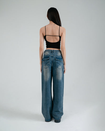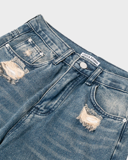 WASHED OUT BLUE DISTRESSED BAGGY DENIM
