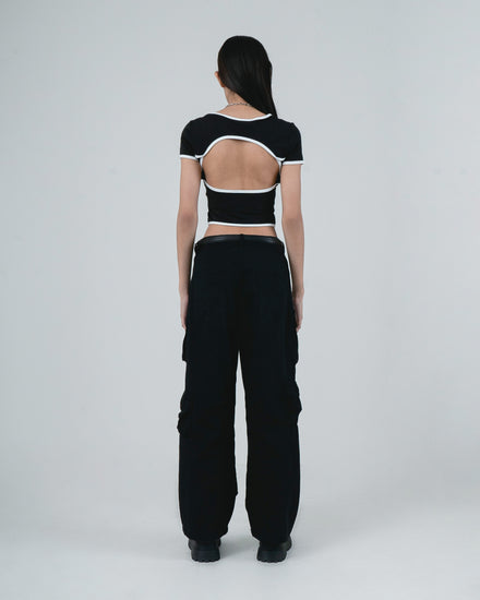 WIDE NECK T-SHIRT WITH WHITE STRIP LINES
